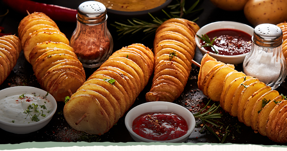 Servire le spirali di patata calde, accompagnando con ciotoline riempite con salse e confetture di verdure.